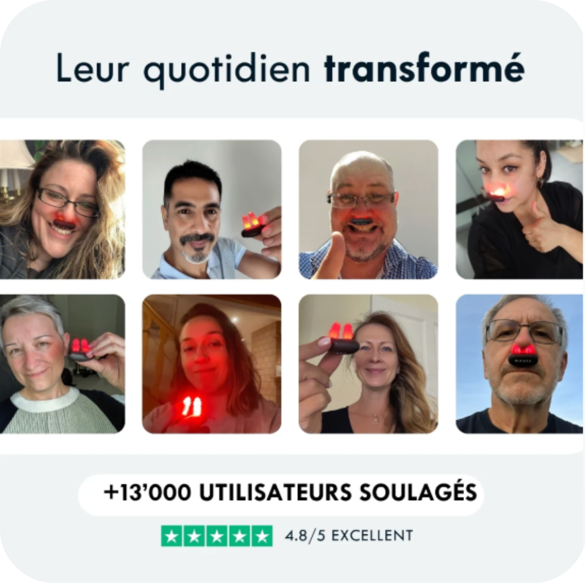 Pour un soulagement complet et durable, nous recommandons une utilisation régulière pendant 5 à 7 jours. Une fois vos symptômes disparus, vous pouvez arrêter la thérapie et reprendre uniquement si nécessaire.