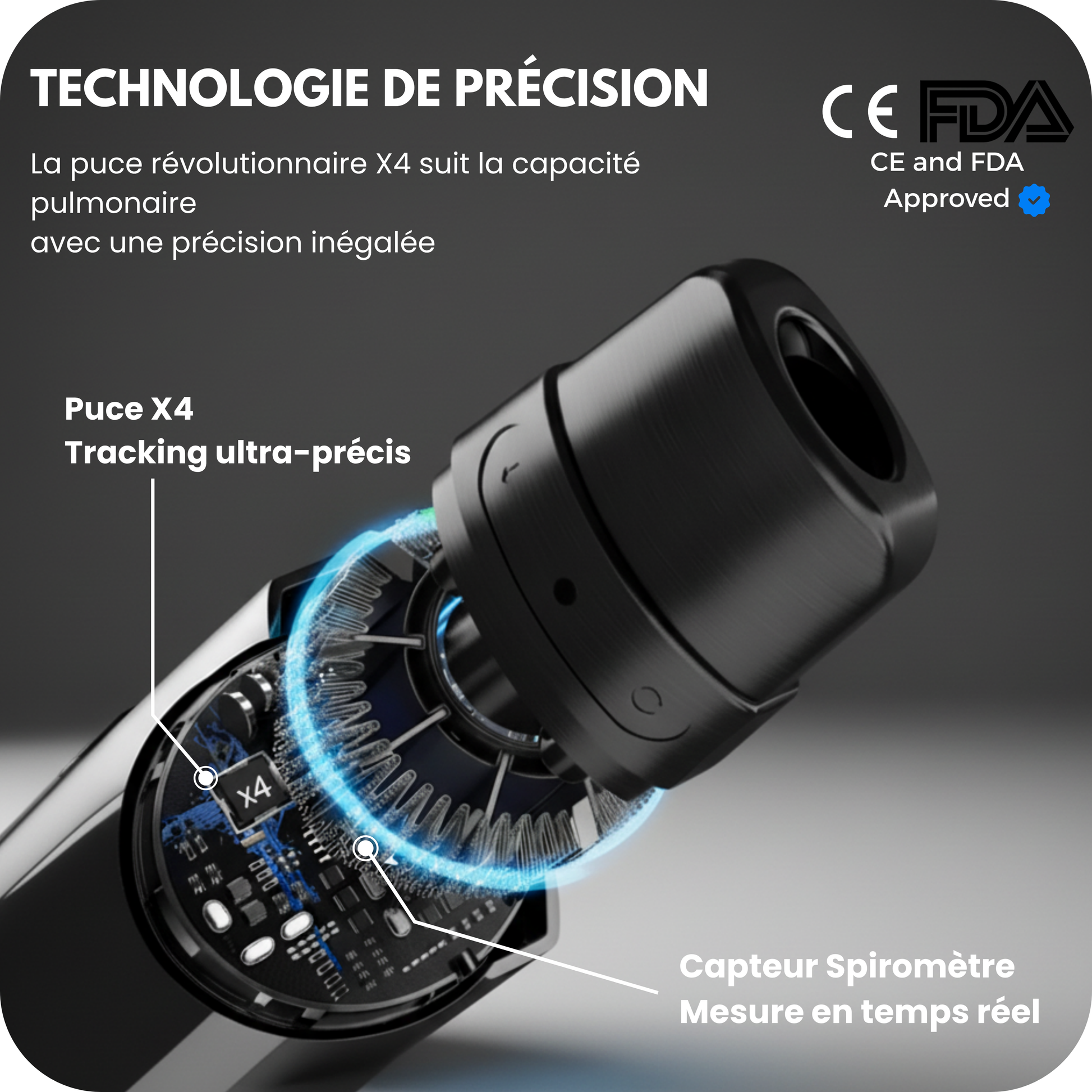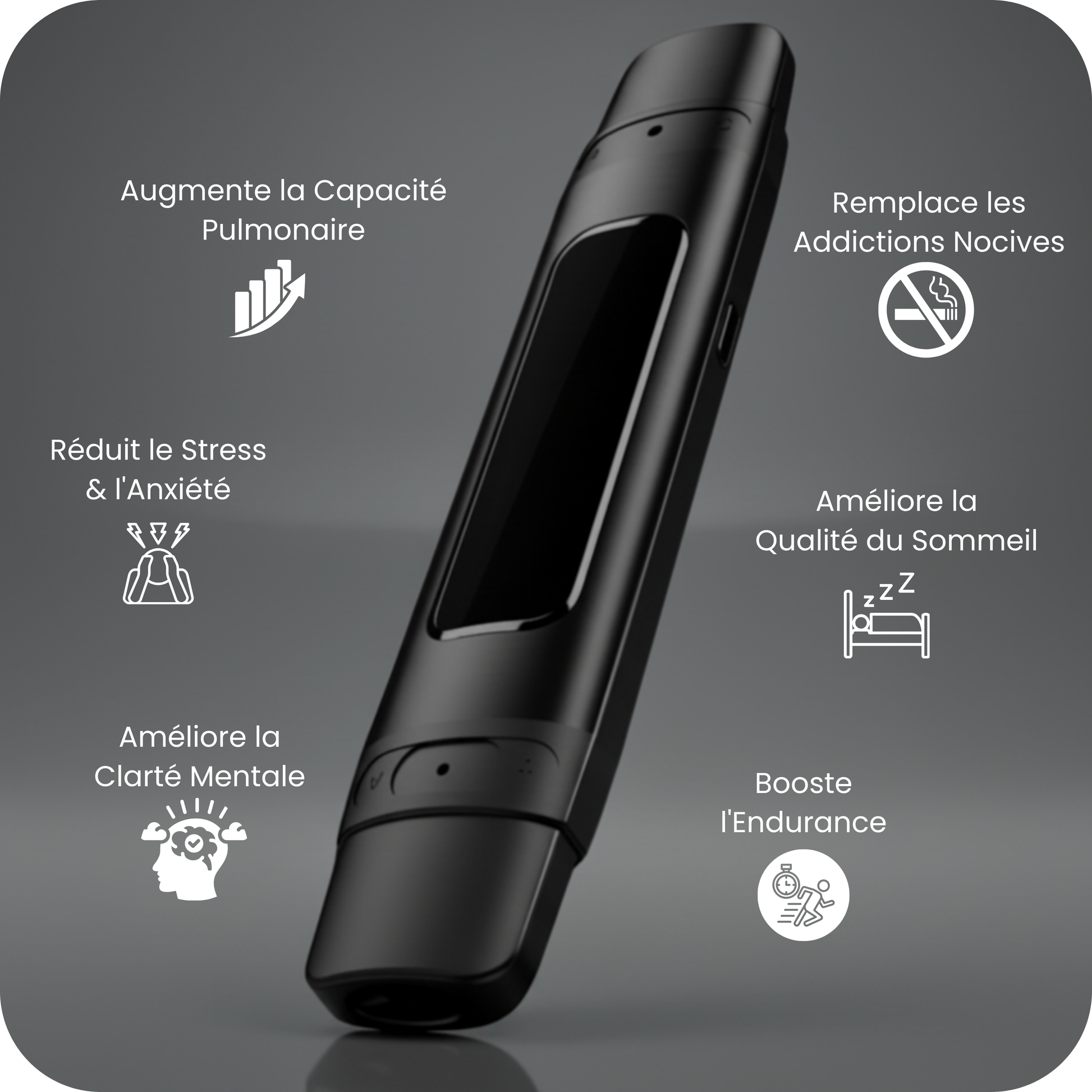 Cette méthode scientifiquement prouvée est utilisée par les athlètes professionnels, les chanteurs et les personnes en rééducation pulmonaire. L'écran digital intégré vous permet de suivre votre capacité pulmonaire en temps réel et de mesurer vos progrès.